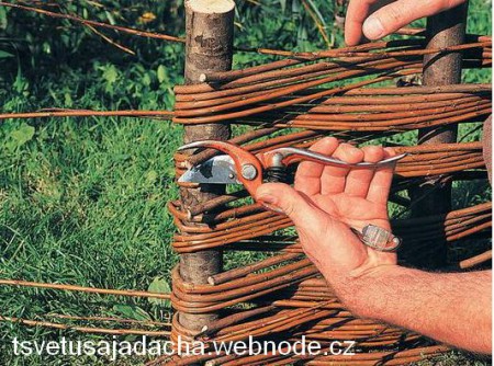 4. Связки прутьев переплетаем так как видите на фото, концы веток плотно затянуть, чтобы плетень не распался.